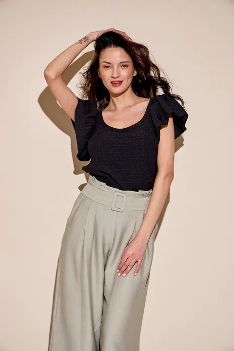Remera tela plisada, diseño en espalda cruzada y manga volado